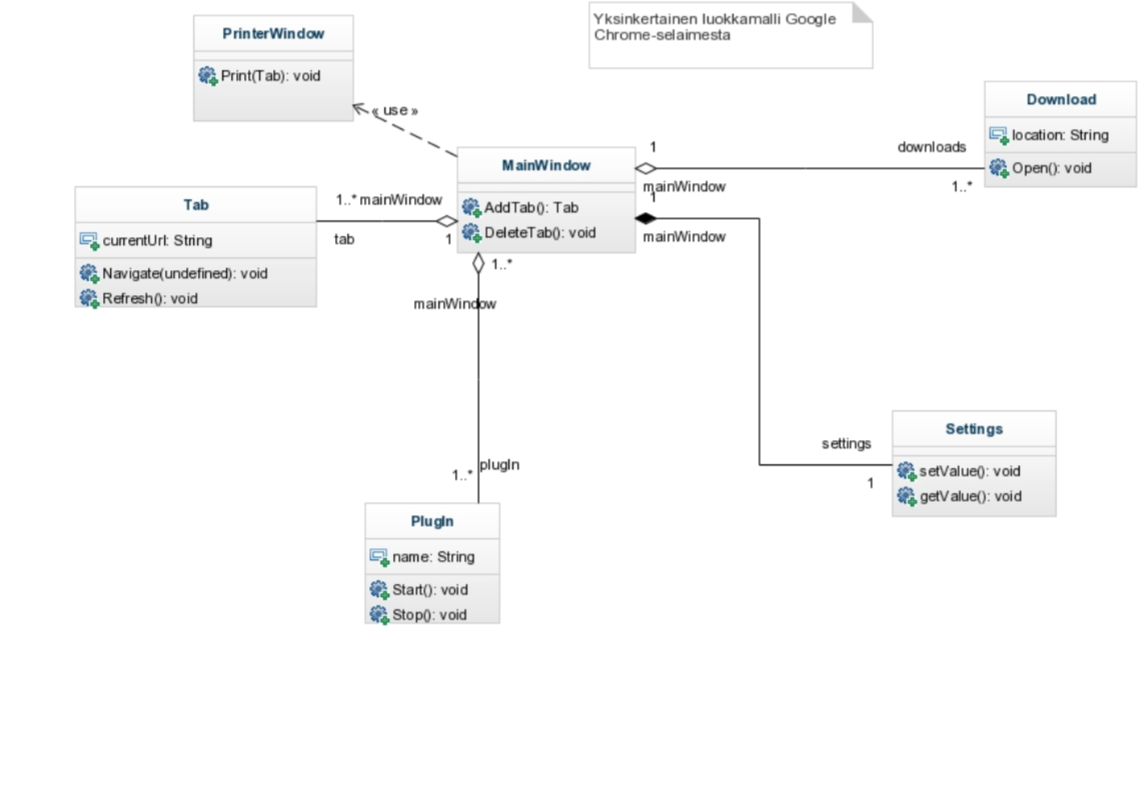 - Käyttöliityymän suunnittelu ja lisääminen luokkakaavioon (usein käyttöliittymä esitetään vain yksittäisenä luokkana)