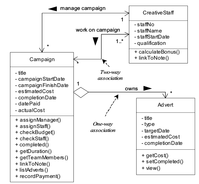 - Monimutkaiset assosiaatiot: useampaa kuin kahta olioluokkaa koskevat assosiaatiot voidaan usein pilkkoa ja näin saada rakenteesta ymmärrettävämpi ja helpompi toteuttaa.