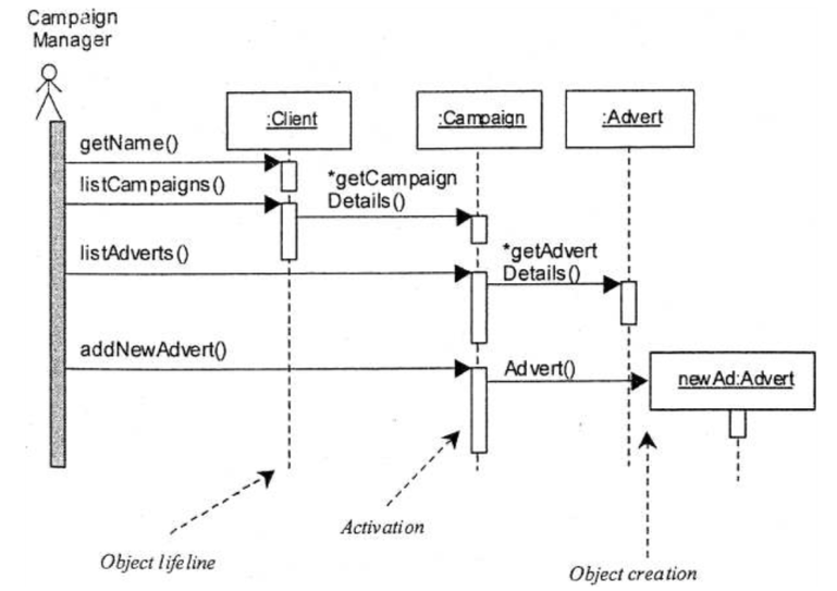 - Olion elinaika kuvataan pystysuunnassa olevalla katkoviivalla (lifeline);