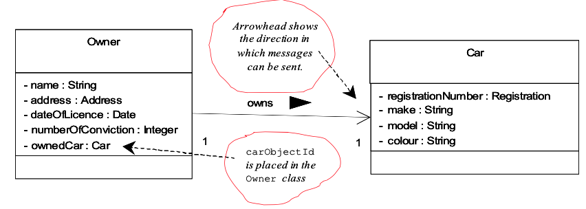 - Jos viestinnän on tarkoitus tapahtua vain toiseen suuntaan, märitellän lähettävälle luokalle viitearvoinen attribuutti (carObjectId), joka sisältä vastaanottavan olion viitteen (kuva 5.35). ● kaksisuuntainen viestintä: